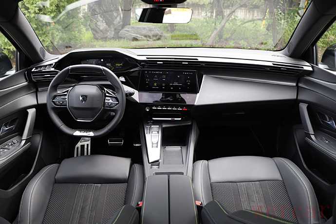 内饰的设计依然是那么有科技感,整体风格很科幻,采用环抱式设计,都说标致的内饰像飞机战斗机的驾驶舱,确实是那么回事儿。标致独特的平视显示仪表,位置更靠上,用户不必低头就能看到仪表。方向盘的尺寸小而紧凑,采用不规则造型,上方和下方都是更平直的设计。
