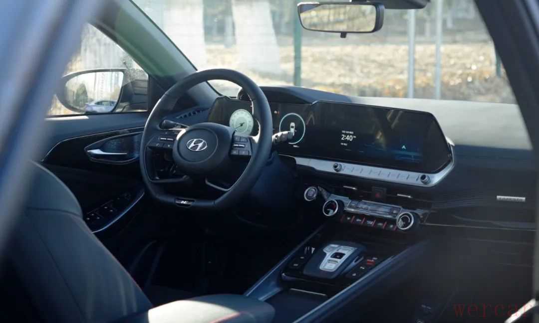 内饰设计有别于目前主流的屏幕+屏幕的处理方式,虽然它也采用了两块不小的屏幕,但菲斯塔N Line对于内饰的处理更有深度。比如保留了大量的物理按键,我觉得是风格化的考虑更多一些,而不是实用性。换挡杆由换挡按键代替,最醒目的是sport+的按键,当然这也是一个拨杆,可以控制车辆的驾驶模式。
