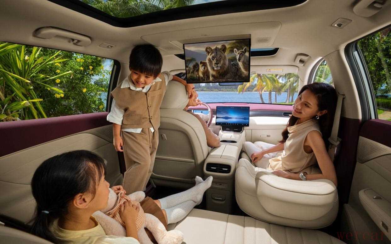 车上那套“豪车五件套”把家用车的玩法打开:云柔大沙发、15.6英寸2.5K后排吸顶娱乐屏、后排冷暖箱、后排小桌板、19扬声器WANOS全景声。想象一下,孩子在后排看电影不闹腾,15.6寸屏直接当哄娃神器;冷暖箱能塞下8瓶可乐,路上吃热早餐或夏天来瓶冰饮都不费劲;小桌板一掀就是临时餐桌或移动办公桌。把车当影音室或小餐厅来用,出游体验瞬间升级。
