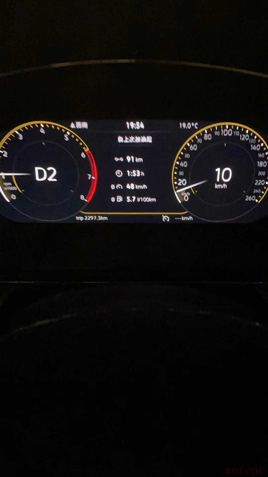高速表现还是很优秀的,最低干到了5.6,差不多110码左右,但是日常上下班通勤的表现就一般般吧,日常开接近9个油,如果碰到堵车情况,那就得10个油往上走了,干式双离合的一个弊端就是特别怕堵车,开多了变速箱容易坏,所以我一般很堵的时候都挂手动挡,人工手动挂挡,记得有一次国庆节回家,堵了三四个小时,油耗直接干到15个,总体来说油耗表现还算可以吧。