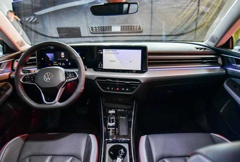 中控台上部和下部都是软质材料,还有缝线装饰,中间是空调出风口及装饰板,用料做工都是同级主流水准。内饰也是完全的新设计,这也是上汽大众第一款量产双联屏产品,算得上是与时俱进地改变了。除了双联屏外,氛围灯和带纹路的饰板都让内饰看起来更有现代感。