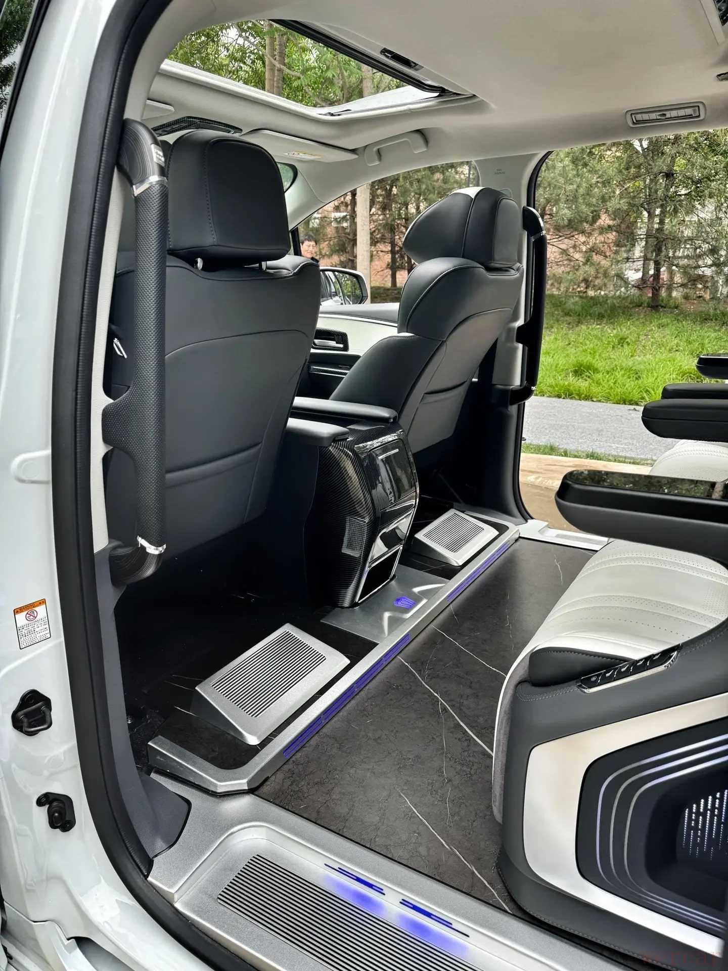 塞纳的座椅设计那叫一个棒,特别是第二排的独立座椅,带自动脚托,坐上去就像进了豪华私人空间。我往第二排一坐,把腿往自动脚托上一放,瞬间就跟飞机头等舱似的,长途旅行的疲惫一下就没了。第三排座椅虽然没第二排那么宽敞,但只要不是挤三个人,空间也还行。我身高 170cm 左右,坐在第三排,腿部和头部空间稍微有点紧凑,不过也没觉得太憋屈。而且,第二排中间座椅能手动拆掉,形成个宽敞的过道,方便第三排乘客进出,这设计可太贴心了。
