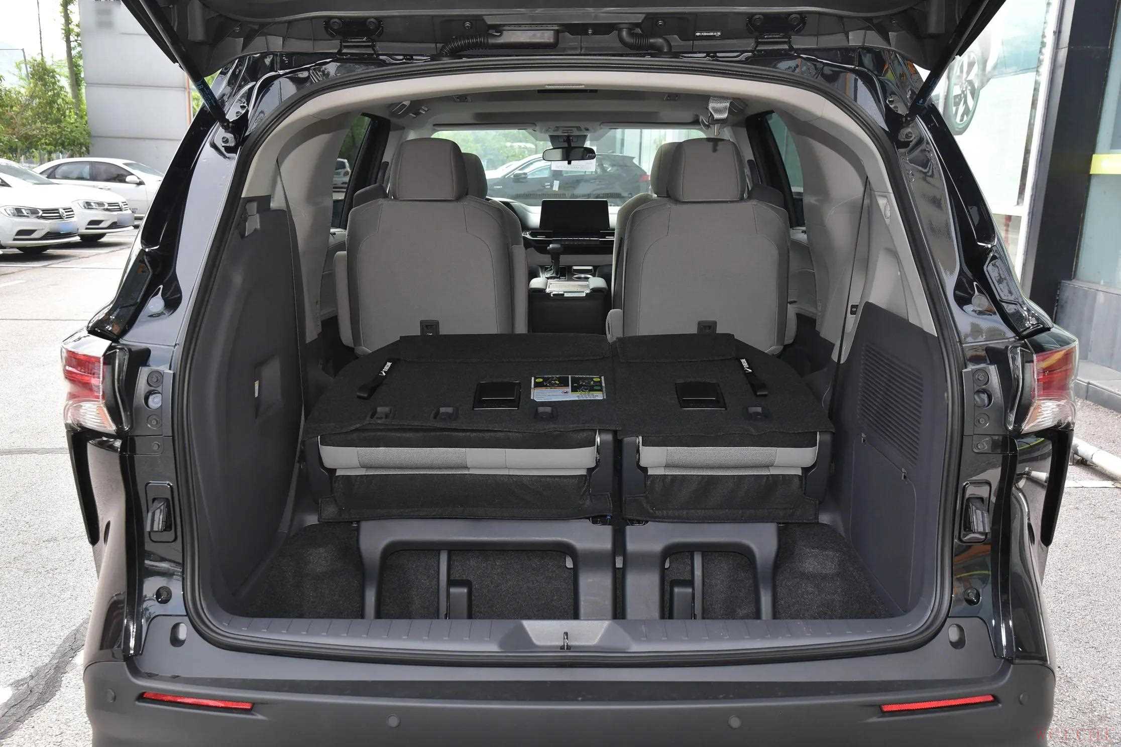 赛那轴距长达3030mm ,采用2 + 2 + 3的七座布局。前两排空间表现优秀,不管是头部空间还是腿部空间都很充裕,座椅的包裹性和支撑性良好,第二排独立座椅还支持腿托调节,舒适性大大提升。第三排空间,成年人乘坐时头部空间略显不足,座椅的填充偏硬,长时间乘坐可能会感到不舒适。在储物空间方面,后备箱在七座全开时容积有525L,能满足日常家庭出行的装载需求;将第三排座椅放倒后,可扩展至2112L ,能轻松装下大件物品。车内还有很多实用的储物格,方便放置小物品,不过部分塑料件质感一般,拉低了整体档次感。