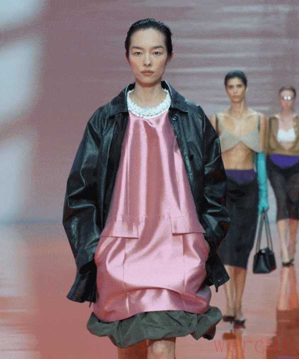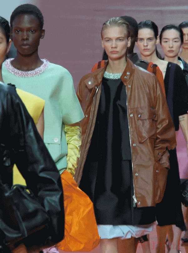 同时,Prada 将这一季的主题命名为“Body of Composition”,composition 所代表的组成与构成,转化为了服装的转换、改变、适应,当未来充满未知的时候,以衣服作为不确定之道的启发,Miuccia 意在通过这种概念去强调因为有了选择和自由,女性能够拥有掌控感和能动性。