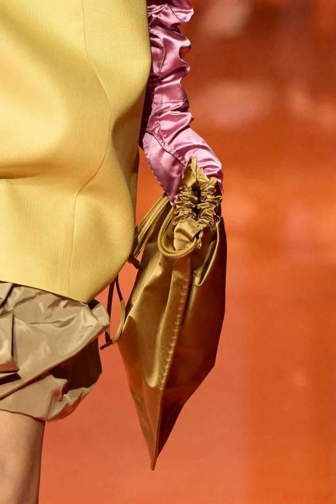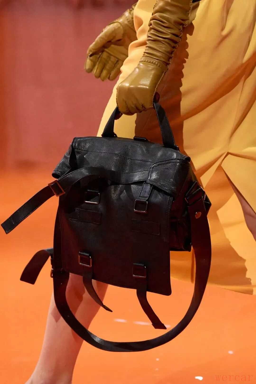 本季的手袋在实用与装饰之间找到了微妙的平衡点。标志性的Prada手袋以硬挺的廓形呈现,不论是手拎还是被攥在手里,既展现出力量,又不失高级感。不少手袋的造型冷冽,仿佛是一件可佩戴的雕塑。