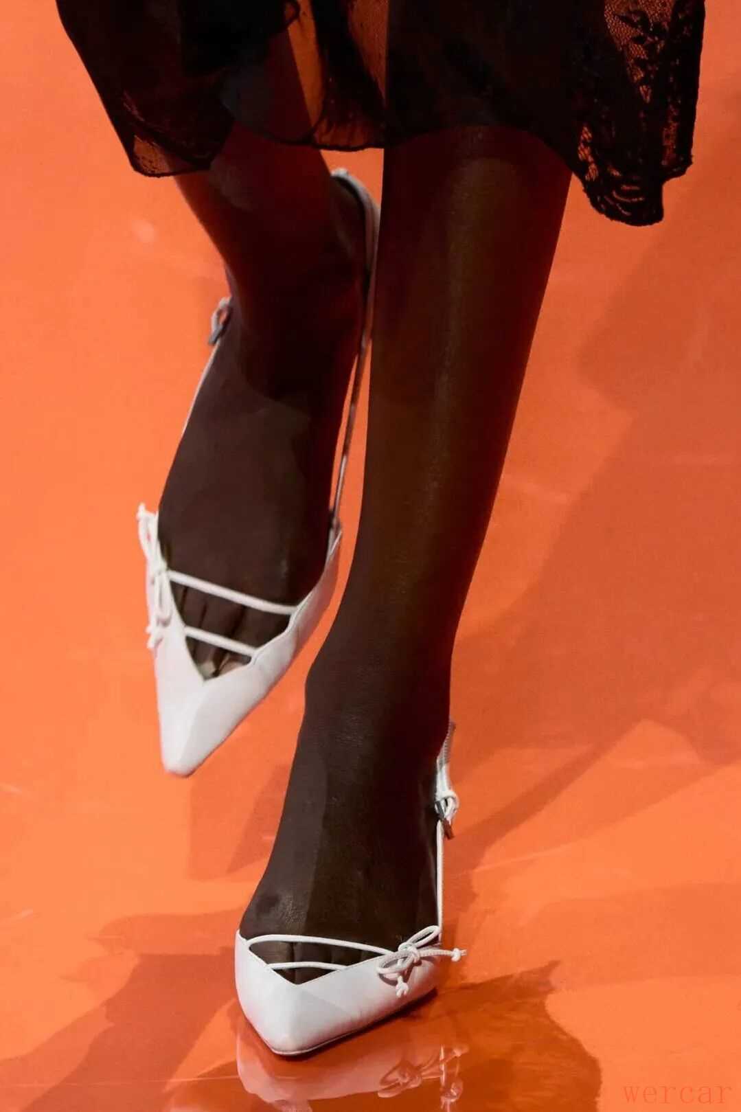 鞋履部分同样亮眼,薄底运动鞋依旧是趋势,百看不腻,尖头鞋在小蝴蝶结的装饰下更为柔美,鞋尾带有水钻装饰的尖头鞋摇曳生风,共同塑造出女性多面性的表达。