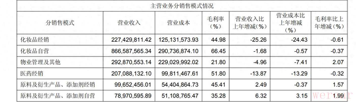 福瑞达将化妆品板块的收入下滑归结为四大原因,包括在细分品类竞争层面,瑷尔博士多款核心单品处于迭代阶段;瑗尔博士严控乱价行为,对部分经销商采取有限停货措施;线上流量红利减退,自播投产比不达预期;受行业环境影响,OEM(代工生产)产品部分客户因经营不善流失。报告期内,该板块经销模式收入同比下滑25.26%至2.27亿元,自营模式收入同比减少1.68%至8.67亿元。