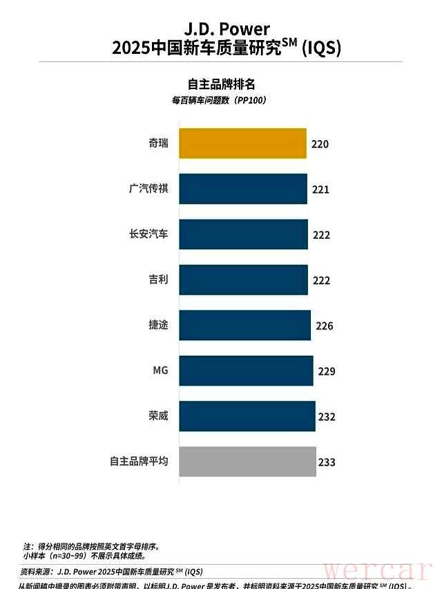 J.D.Power最新榜单:只有7个国产车质量过关,其余全在平均线以下。