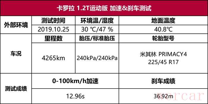 (丰田卡罗拉 1.2T 运动版 100—0km/h 制度成绩:36.92米)