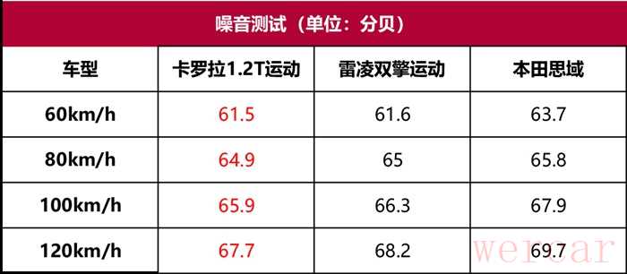 TNGA架构下的车型,普遍在NVH上都有所进步,所以隔音水准随便超过本田思域当然不难。而且请注意,以上的测试车型皆为17寸大轮圈,理论上来说主销的车型由于搭载更小的轮胎,隔音会更加好。