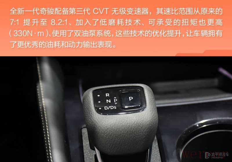 全新一代奇骏依旧配备CVT无级变速器,不过这款产品是全新研发,属于第三代产物,代号为UK33。它不仅有更宽的速比,同时面对涡轮增压发动机那种高扭矩的压力,这款变速器也能承受,并且加入低损耗技术等。