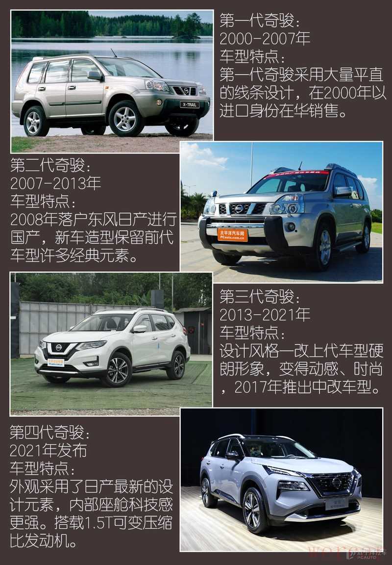 首先简单回顾奇骏的车型历史,第一代车型诞生于2000年,曾经在2002年以进口的身份上市,但那时候CR-V在市场抢的先机,随后落户东风本田销售,而作为进口身份的奇骏销量不如人意,最终退出了大陆市场。2008年,奇骏终于落户东风日产销售,国产版车型基本延续着进口版车型的设计,搭载2.0L发动机和2.5L发动机以及适时四驱系统。第三代奇骏一改前两代车型硬派风格,基于日产CMF平台打造,开始在外观上融入了一些时尚元素,内饰布局也变得更加立体。