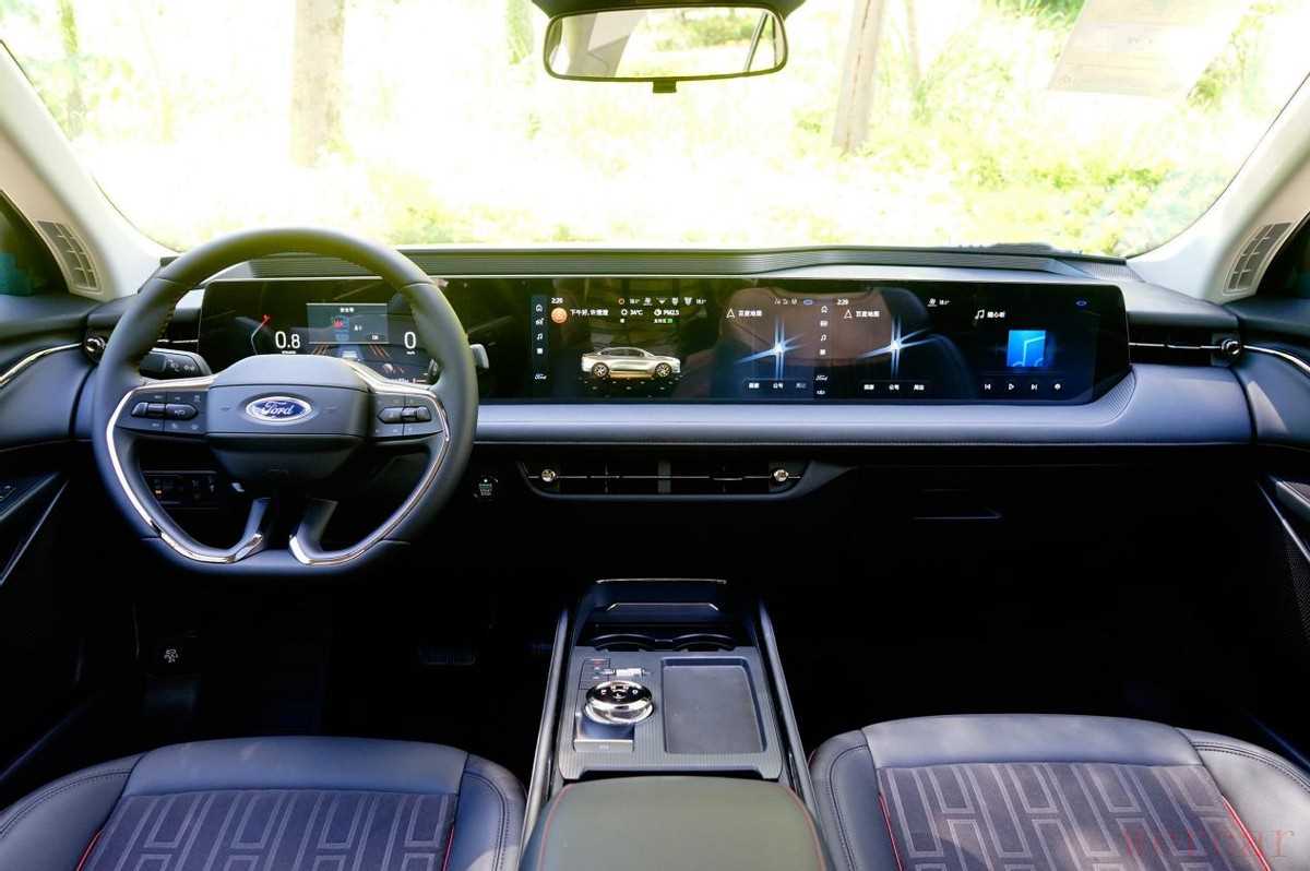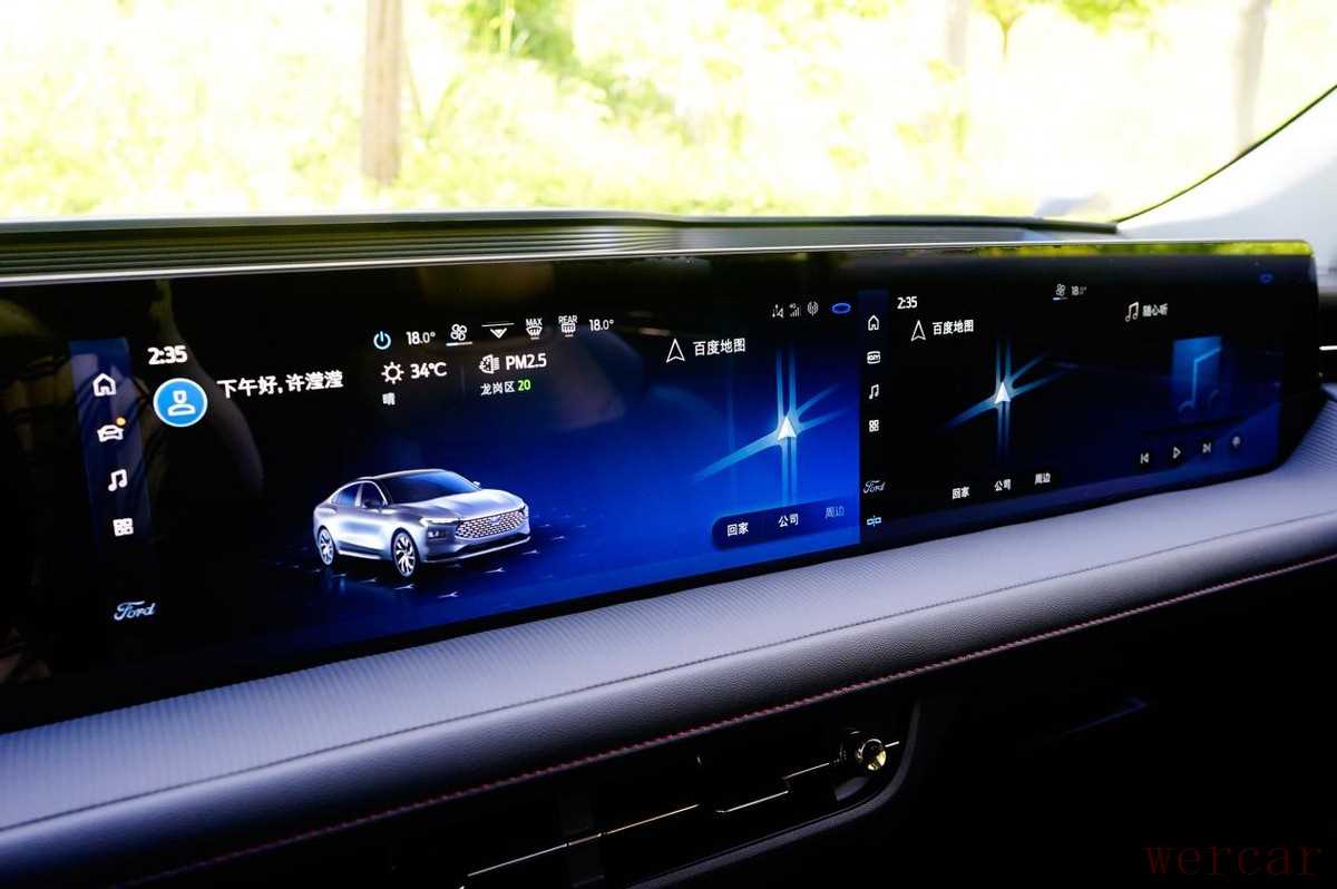 两款高配车型配备27英寸一体式4K中控屏,车机依然搭载SYNC+2.0智行互联系统,各种上网娱乐功能齐全,中控屏支持分屏操作,副驾驶也能控制导航、音影、车辆设置等菜单。另外,语音识别可控制多媒体、导航、电话、空调、天窗和车窗,比一般车机控制的硬件更多。