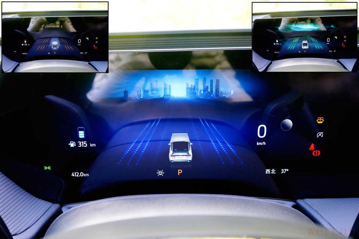 12.3英寸全液晶仪表盘UI界面时尚,提供畅游都市、极光秘境和燃擎赛道三种主题模式,但取消了AR实景导航。