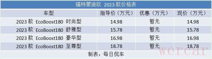 今年合资品牌整体下滑的势头进一步加剧,不同厂家采取不同应对策略,有些通过降价保销量,有些积极转型新能源。长安福特的策略是将重心转到中级以上的产品线、产品深入本土化策略。去年推出的蒙迪欧就以大空间、大联屏和较强的动力取得一定的成绩,6月销量为4335台,还算不错。为了应对今年更激烈的价格战,不久前厂家又推出了蒙迪欧1.5T车型,4款车型价格区间14.98-18.78万元,入门价下探到了15万内,相比之下,思域这样的15万级紧凑轿车瞬间就不香了。蒙迪欧1.5T的动力、油耗表现怎样?近期我们对蒙迪欧2023款EcoBoost180豪华型进行了试驾,一起来揭晓答案。