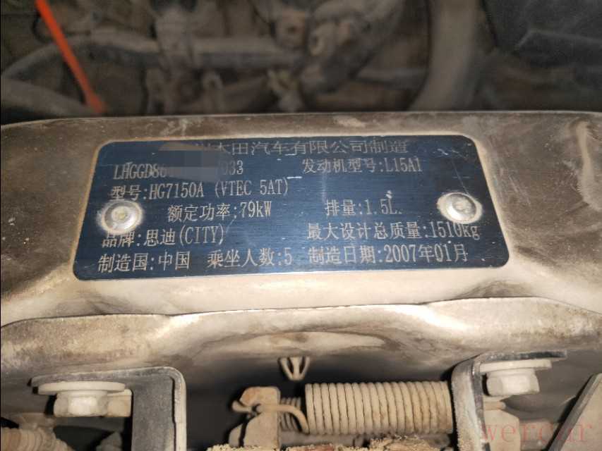 2007本田思迪自动挡龙门架铭牌