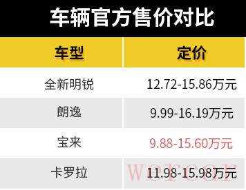 环顾当前的中国车市,明锐的最主要竞品为朗逸、宝来和卡罗拉这三款车型。我们可以通过简单的对比来大致了解全新明锐与这三款车相比的优势与劣势。