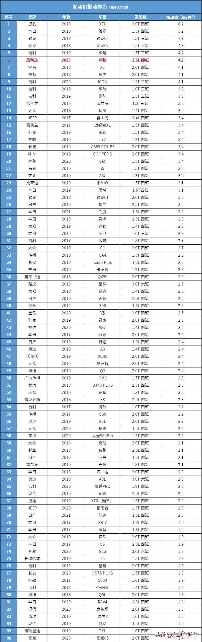 这辆斯柯达明锐搭载了一台1.6L四缸发动机,怠速振动数值为4.2米/秒²,算振动比较大的一类,建议要定期使用燃油添加剂,比如我们的大蓝瓶。
