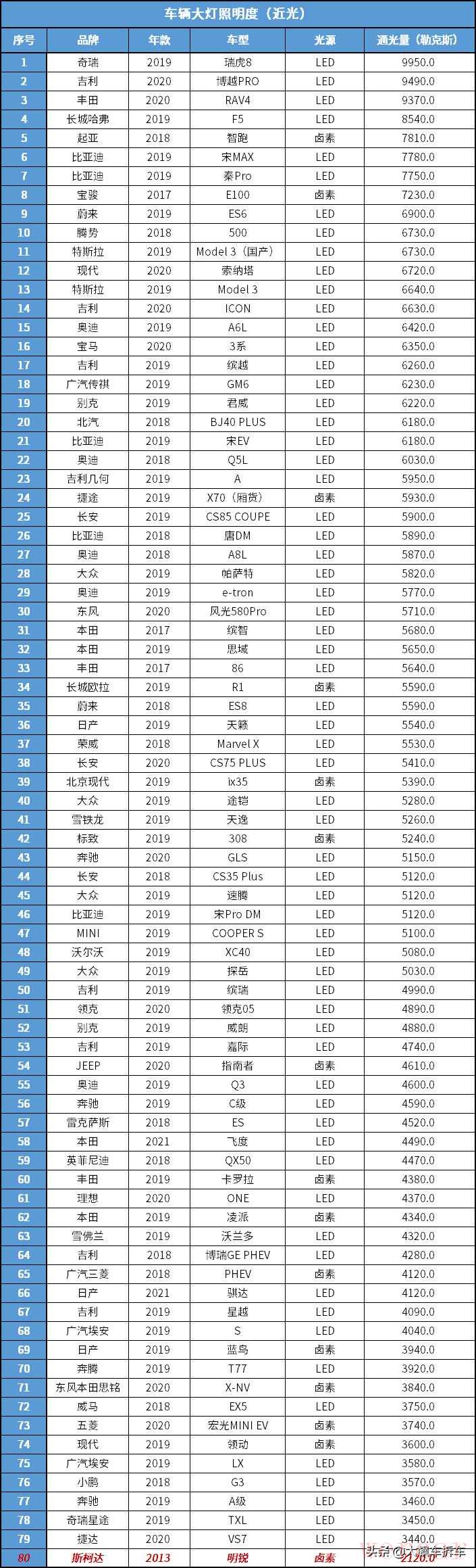 这辆车的大灯是卤素光源,最大光照度只有2120勒克斯,可以称得上是“蜡烛灯”。