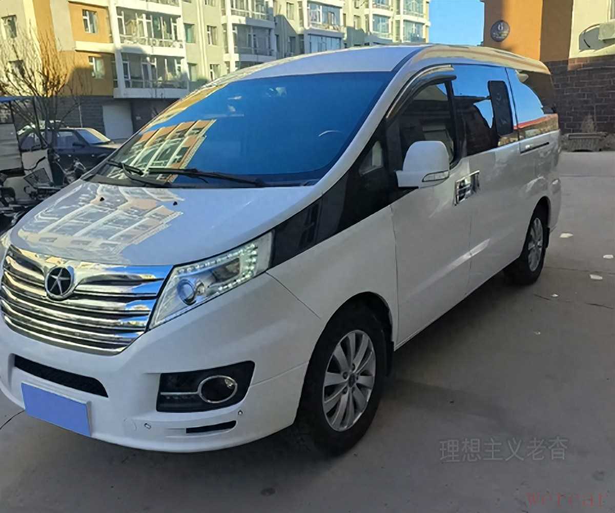 这是一台江淮瑞风M5,汽油2.0T排量,自动挡,5门7座,短轴低顶,出入灵活,通身亮白色车漆,非常的流光丝滑,车窗都贴上了黑膜,防晒又保护个人隐私。