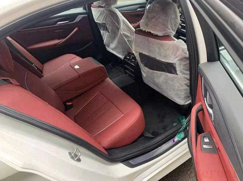 看完外观的设计,我们来看内饰,可能你会被宝马5系的内饰设计所折服。我们所拍摄的这款宝马5系绝对是一款“骚包”内饰,相信喜欢逛夜店的年轻朋友特别的喜欢吧?它采用的是大红色的内饰,非常的运动,也特别的有激情。中控台部分依然是我们熟悉的豪华宝马,内饰现代感以及豪华感都很不错。悬浮屏幕,,电子挡把,三幅真皮运动方向盘,都让我们都很熟悉。它的中央扶手采用的是对开式的设计,开口很大,而且纵深也足够,储物很不错。