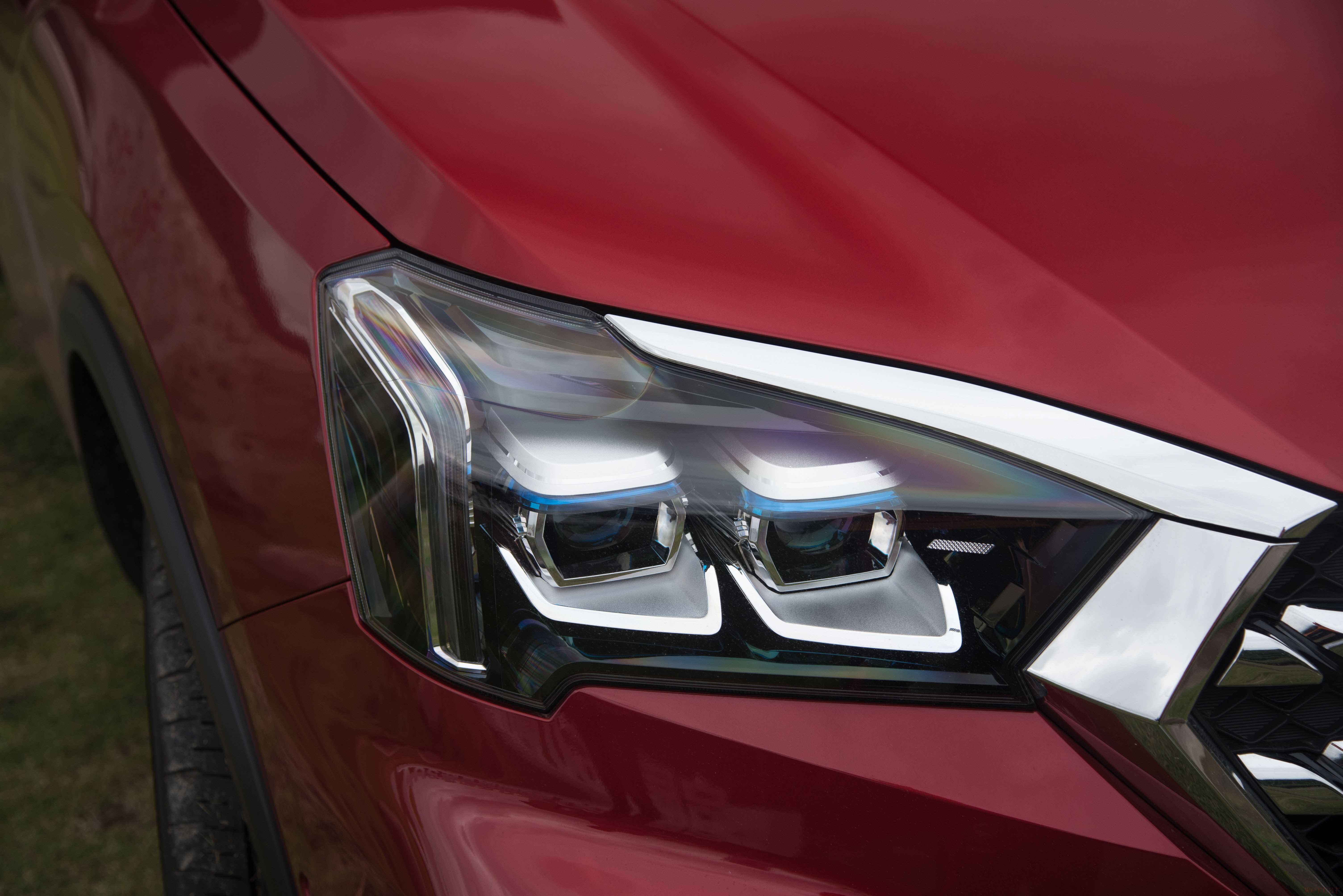 "前脸:" 大尺寸格栅(部分车型为封闭式),搭配锐利的LED大灯组(通常为矩阵式或贯穿式设计),视觉效果较为醒目,符合当下主流审美。