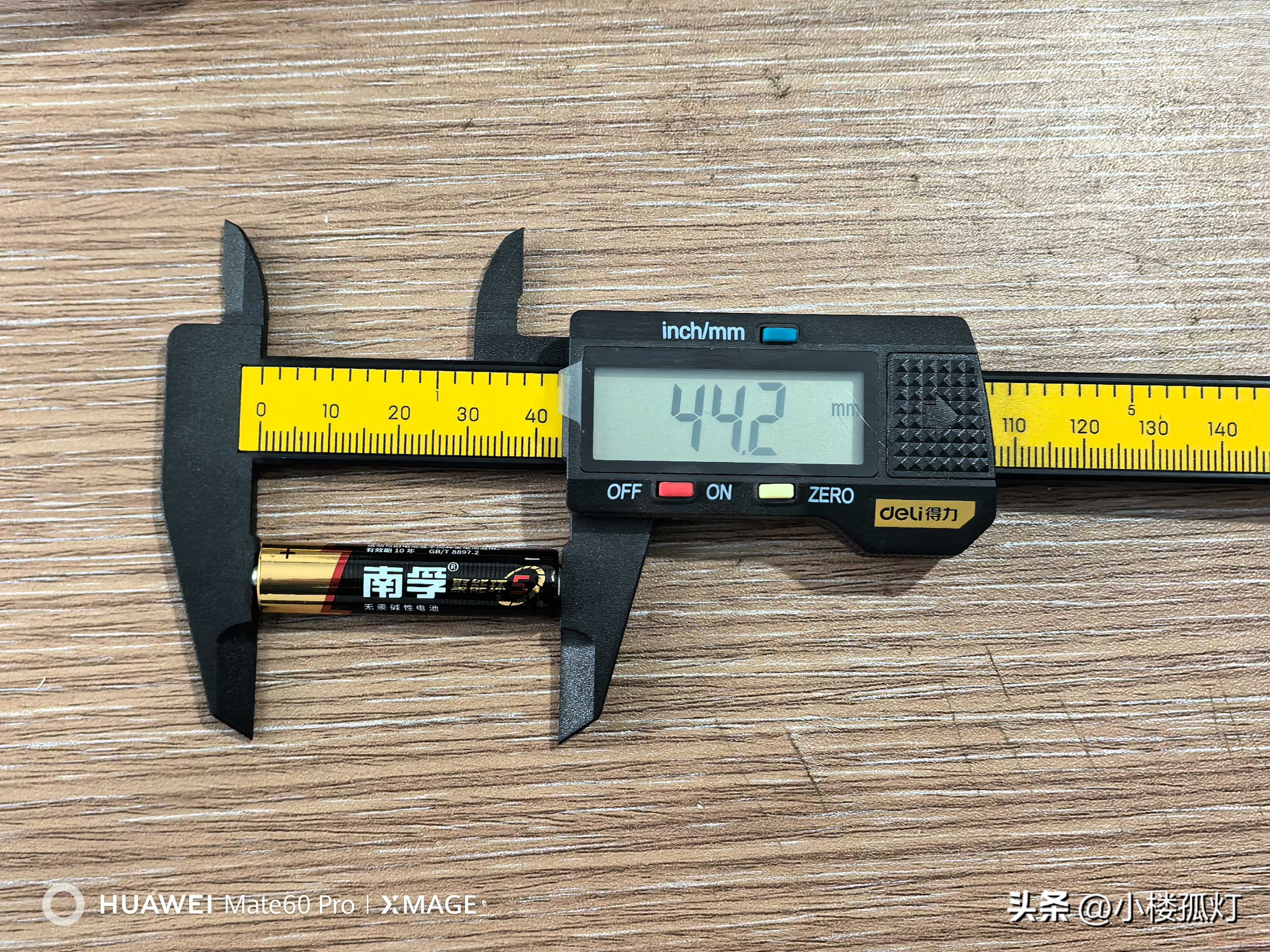 用塑胶绝缘卡尺测得电池长度:44.2mm