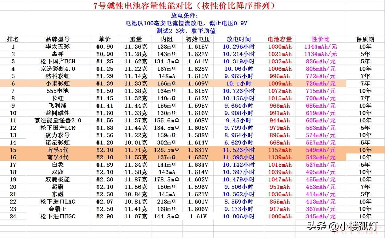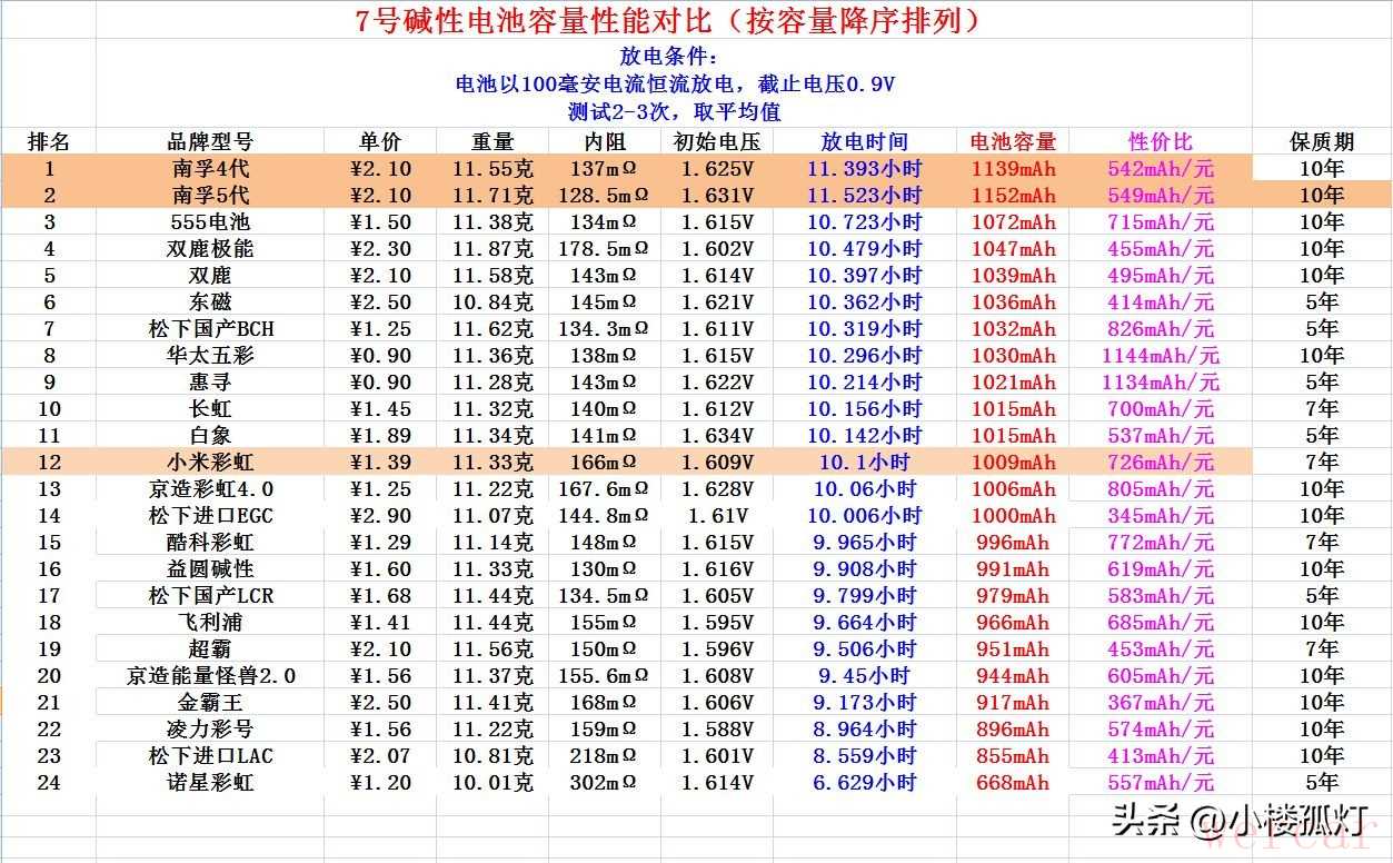 从对比图来看,南孚电池一骑绝尘,容量最大最耐用,不愧为史上性能最强电池。当然好的电池价格也不便宜,所以南孚电池性价比有点低,不太亲民。大家可以可以根据自己的个人喜好、用途和使用场景的不同,选择不同品牌的电池。