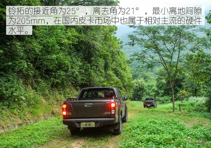 而江西五十铃作为国内皮卡车型的领军品牌,今天试驾的这款铃拓也是展现出了较为突出的产品力,配置突出,实用性也是非常不错;同时我们也注意到了在海南、广西、贵州等南方省份,家用皮卡其实已经非常广泛,相信随着政策越来越开放,在北方市场皮卡的身影也将越来越多。(图/文/摄:太平洋汽车网 王嘉逸)