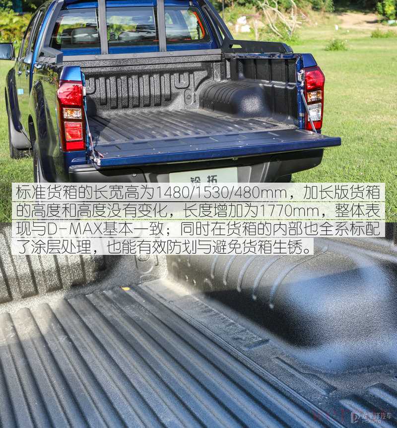 "内饰:" 坐进车内,能感受到五十铃一贯的严谨和实用性。中控台布局清晰,物理按键较多,符合皮卡用户的使用习惯。材质方面,虽然不是顶级豪华,但硬朗耐用,符合皮卡定位。AT版可能在座椅舒适度、仪表盘显示信息或部分内饰细节上有所提升。整体感觉是“好用”而非“豪华”。