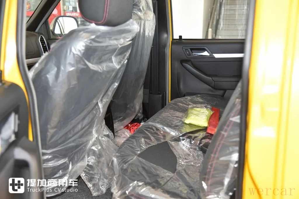 后排空间的宽敞程度稍稍逊色于自家的T30皮卡和达伽皮卡,但仍然能够满足多人出行的乘坐需求。