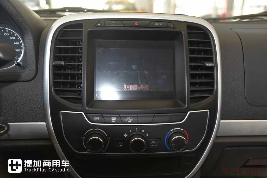 与庆铃达伽皮卡同款的三幅式多功能方向盘,握感舒适,集成有多媒体控制、蓝牙电话以及定速巡航调节等功能,各功能区域划分清晰,操作便捷,方便驾驶员操作。 仪表盘采用传统指针的双炮筒式设计,信息显示清晰易读。