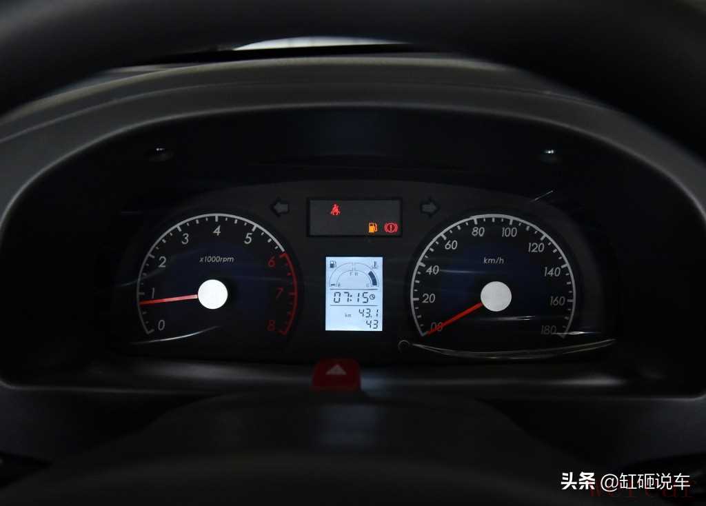 内饰的设计,看起来会比较朴实,一切都是以实用性为主。副驾驶位置设有一个内凹的储物箱,日常的使用非常方便。三辐式的方向盘,表面均是塑料材质包裹,造型设计还是比较有个性的。仪表盘为机械指针的设计,采用黑底白字的搭配,显示的读数清晰明了。
