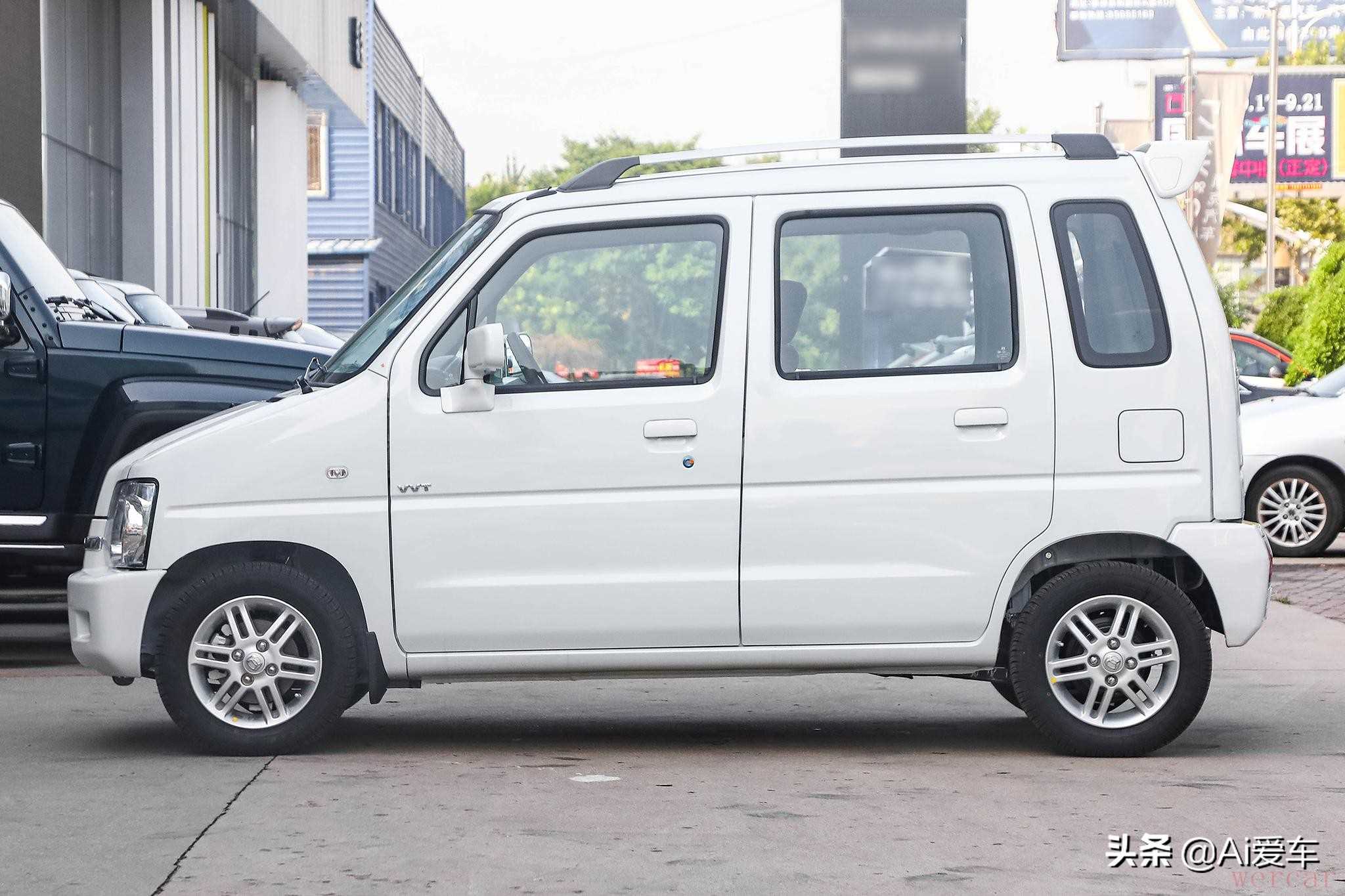 车尺寸长宽高3400x1575x1705mm,轴距2335mm,5门5座的设计,空间实用灵活。内凹式腰线贯穿车身,增加一定流动感。悬浮式旅行架子,有着不错的实用性。前后的165/65 R13的铝合金轮毂,样式好看。
