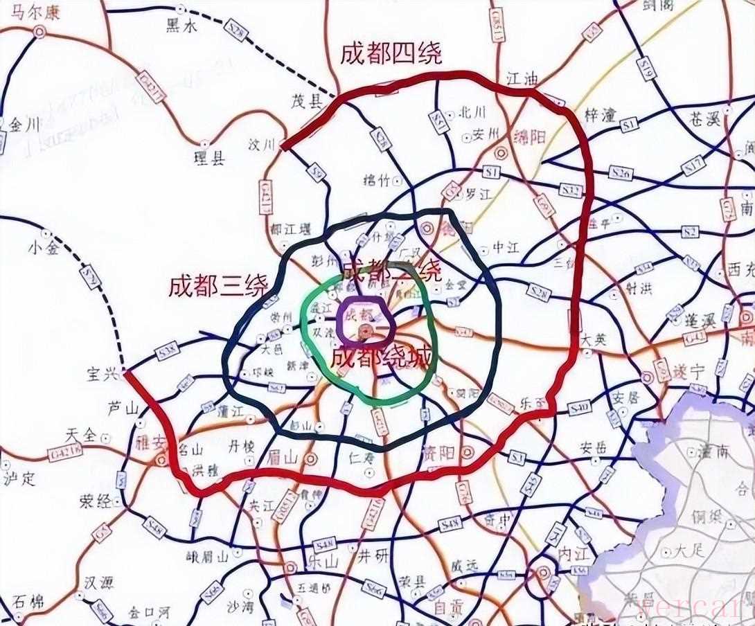 成都现在有三条绕城高速,第四条的南、东、北段已经有路在跑,西段因为山高地质复杂暂时没列进来。圈起来的高速网络正在成形,但并不是一条简单的“市内环”,更多像把周边几个城市拉成一个大圈,连结雅安、汶川、绵阳、遂宁、资阳、眉山这些地带。