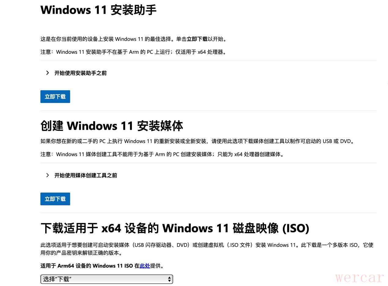 https://www.microsoft.com/zh-cn/software-download/windows11),下载第二个“创建 Windows 11安装媒体”,然后这个小工具就会下载到本地,速度还是非常快的。