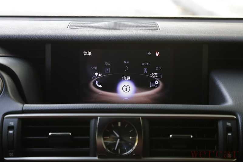 出风口中间的小时钟,真心让我爱了;配合工整清晰的物理按键布局,IS 300给人的感觉是很亲切,操作起来也很容易上手。中控液晶屏只有7英寸,显示足够清晰,需要通过下面的旋钮操控。