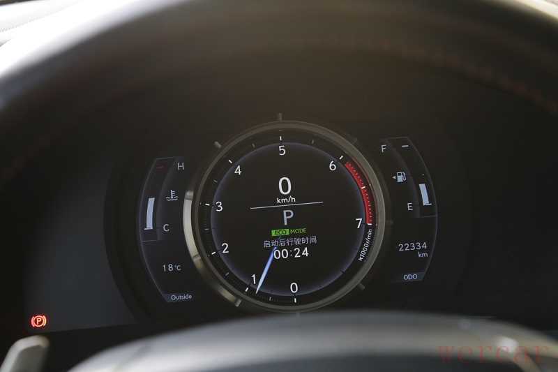 第一次启动,脚刹让我印象深刻。假如一辆15万左右的家用轿车采用脚刹,我会接受不了,觉得有点low;但在雷克萨斯这辆运动型轿车里松开脚刹,然后一键启动,似乎颇有仪式感。