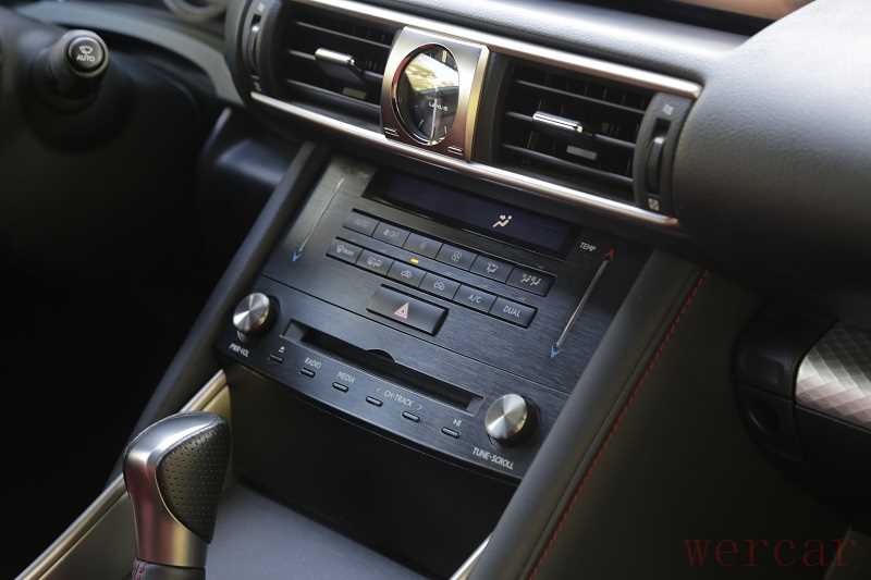 说完动力体验,再分享一些这车内饰中一些打动我的细节。除了红色座椅传递出那种强烈的“外冷内热”信号,IS 300的中控台给我一种复古的典雅享受。当然,萝卜白菜各有所爱,可能会有人觉得这种稍显古板。