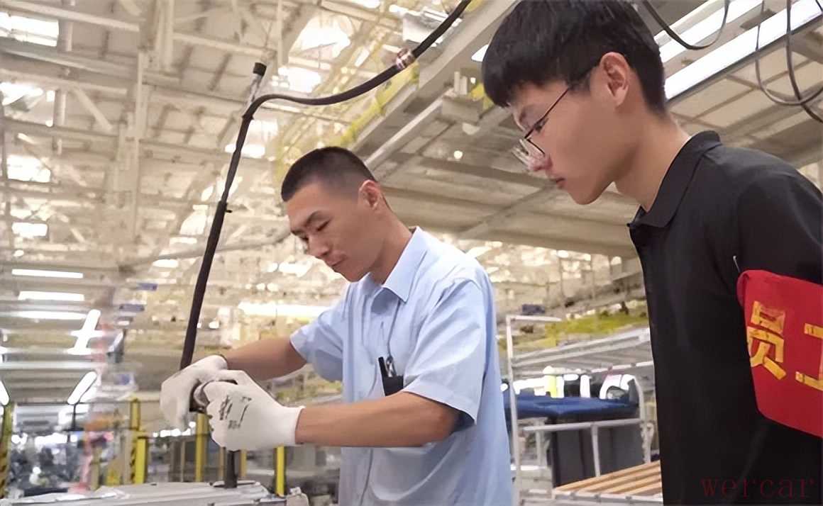 自动化程度很高的生产线,宽敞明亮的新能源汽车生产车间。住宿条件