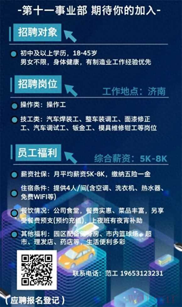 用工类型1.正式工:签订劳动合同,缴纳五险一金。2.实习生:面对中高职院校、技工类院校,签订实习协议,缴纳意外保险。工资待遇技工6000-9000元普工5000-8000元岗位环境