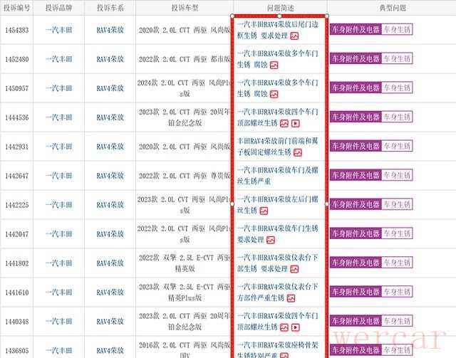 锈穿的何止是车漆。合资车光环裂开这么大缝,还有人闭眼吹质量。销量榜上压着荣放的吉利星越L、长安CS75PLUS,投诉量还不到它零头。耐人寻味的是,但凡有人吐槽生锈,总有人跳出来说"我的老丰田十年没锈"。废话!十年前用的什么钢板?现在用的什么边角料?