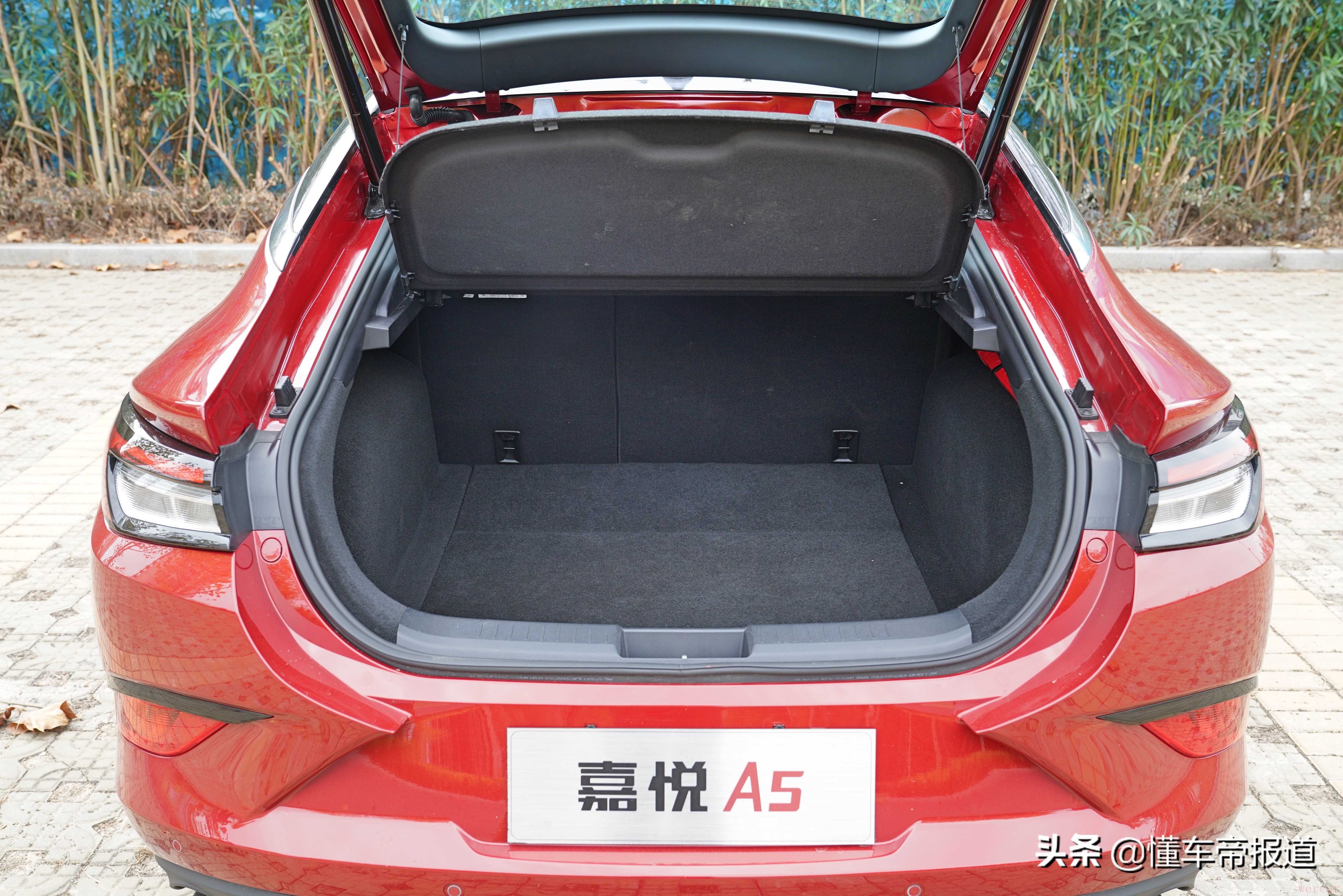 储物空间方面,嘉悦A5的一大亮点要属后备厢空间表现。得益于溜背设计,新车采用了掀背式尾门,相比传统的三厢轿车拥有更大的开口尺寸。同时,其内部还有着不错的进深。官方宣称,整个后备厢的储物容积达到了440升。