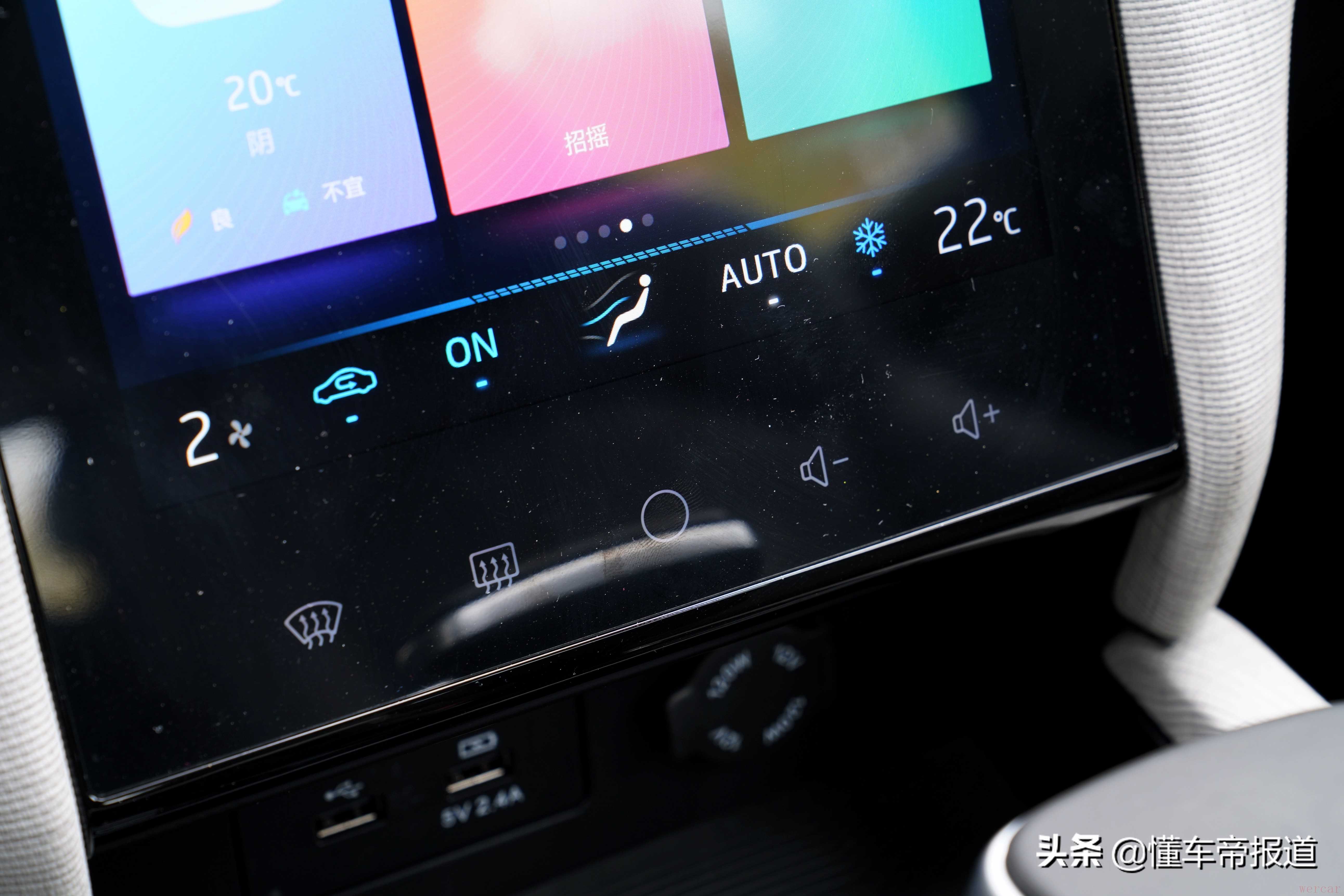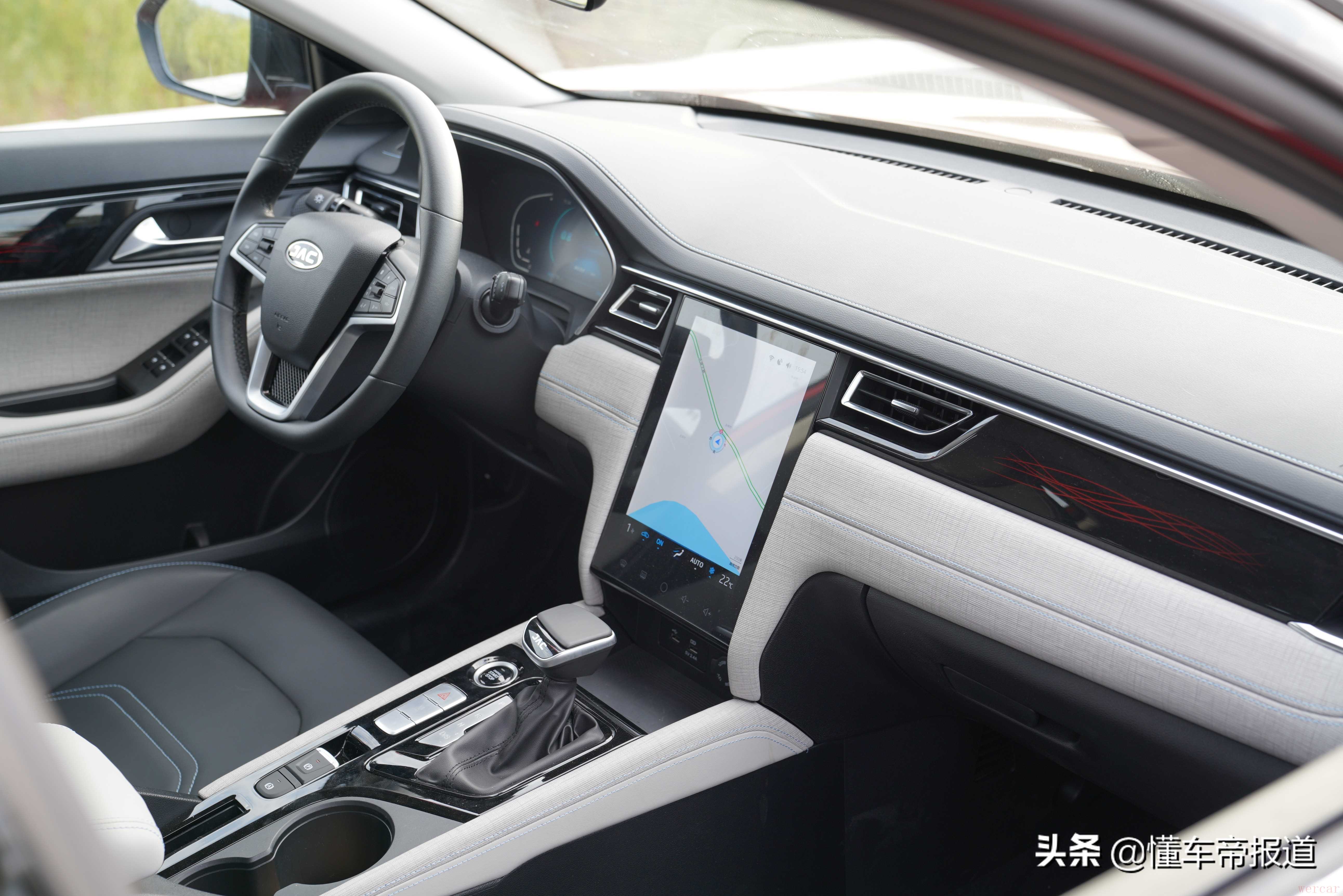 7英寸液晶仪表可以提供旅行、运动、舒适三种主题模式,不过显示清晰度一般。10.4英寸中控大屏搭载了最新一代的J-Link智聆车联网系统,具有声源定位、情景语音、手机APP远程控制、在线视频及音乐播放等功能。不过由于试驾车并非最终量产状态,在实际操作过程中它还是偶尔会出现卡顿的现象,希望正式量产后能改善。而对全部取消物理按键这一设计,我个人持保留态度。