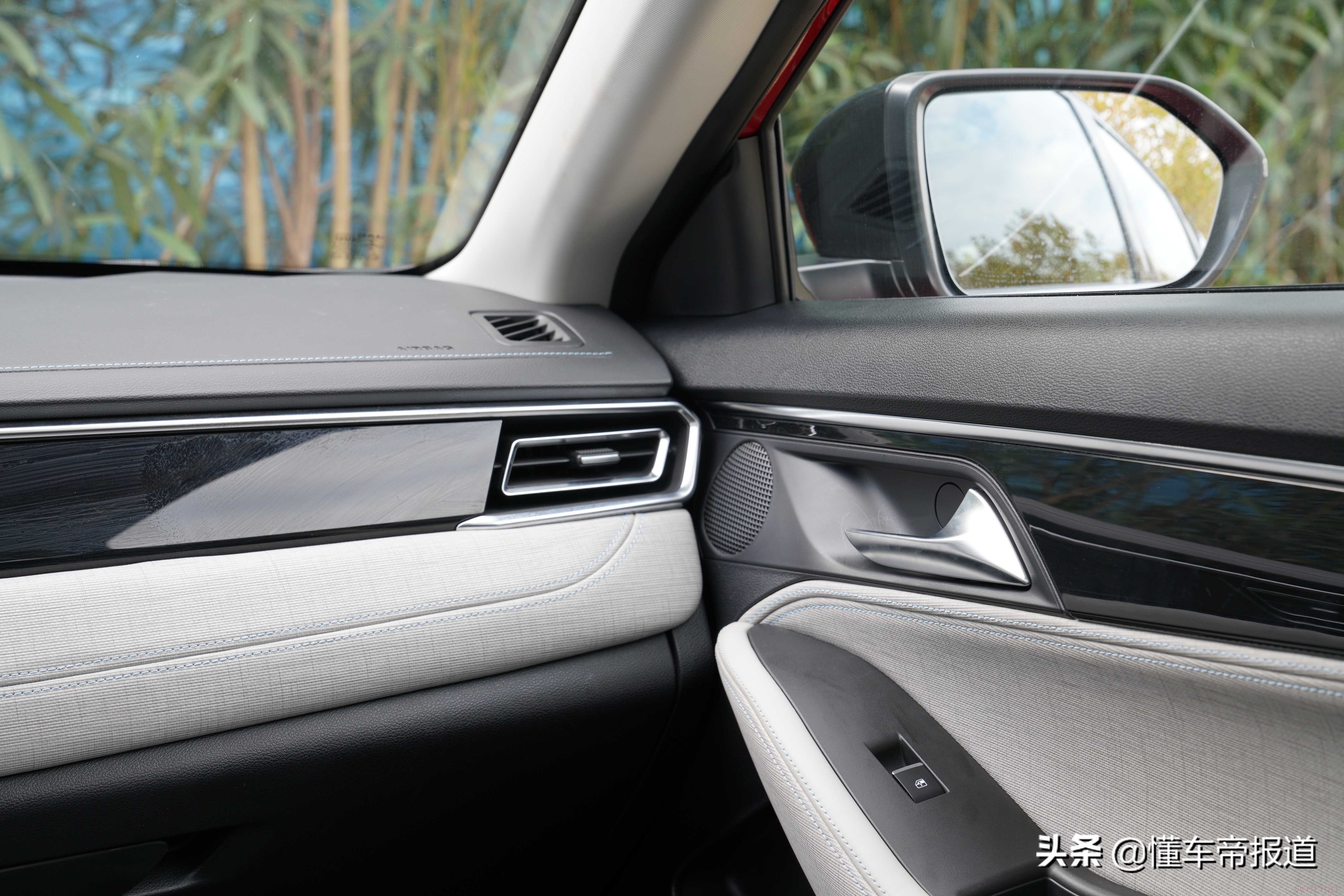 两种内饰方案中,黑灰双色的内饰在中控台和门板内侧等位置大量采用了具有立体纹理的仿织物皮革,营造出更加温馨的驾乘空间。整个中控台上方也都采用了软质材料包覆,在用料上符合该级别车型主流水平。