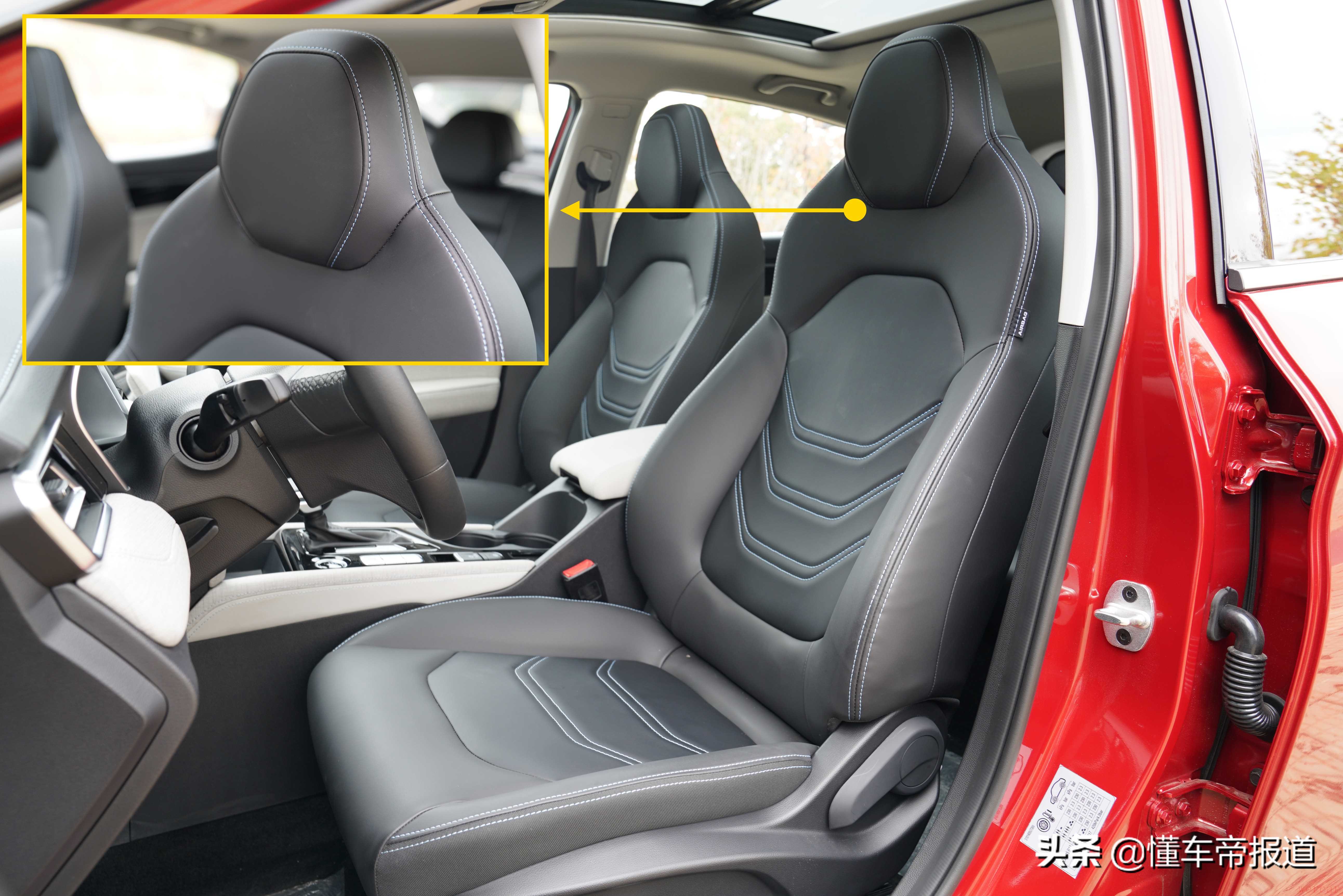 一体式座椅与整车的内饰风格更加相得益彰,从实际乘坐体验来看,它的包裹性与支撑性都不错。当然,采用该设计也带来了一定的弊端——如果你个子稍高一点,那么头枕将无法对你的颈部实现更好的承托。