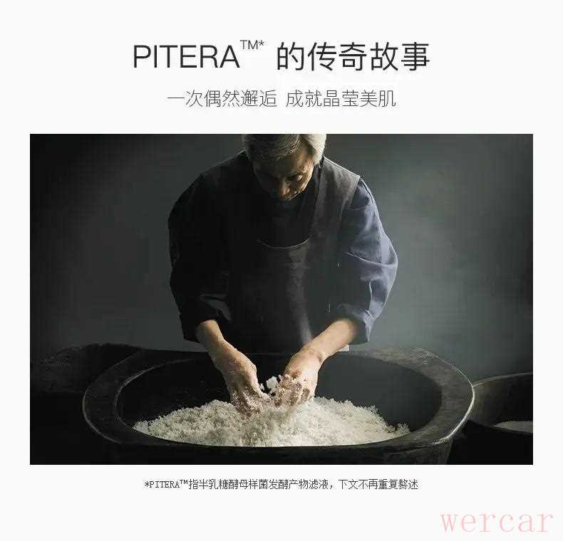 "核心成分Pitera™:" 大红瓶以含有独家核心成分Pitera™(一种富含多种氨基酸、有机酸、矿物质等的小分子复合物)而闻名。Pitera™被认为能够渗透皮肤,促进皮肤自身的修护和再生能力。