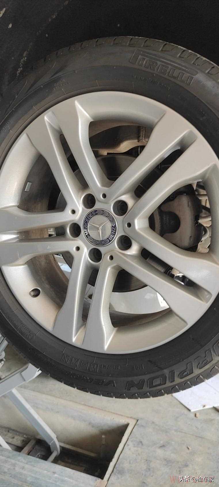 上架检测底盘过程中,我先是对全车轮胎轮毂以及刹车盘片进行了检查,发现这个磨损实在太明显了,轮胎4个有3个都更换了,刹车盘磨损的凹槽明显,和4万公里明显不符。当然这对我们检测师来说可以分辨出来,对普通人估计也看不明白到底有何区别。