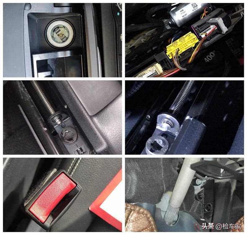 因为转向管柱的部位比较低,在排除车辆是否泡水的时候,我们往往首先对它进行检测,这台车的转向管柱没有锈蚀,也没有什么拆卸,点烟器正常,座椅地步电机和线束以及海绵均正常,座椅滑轨及螺栓均无拆卸痕迹,全车安全带及卡扣也都是原厂状态。同时我还把全车功能做了个检查,所有功能都是正常的,结合以上现象和其他细节位置的检测,现在基本可以排除这车存在水泡的可能了。