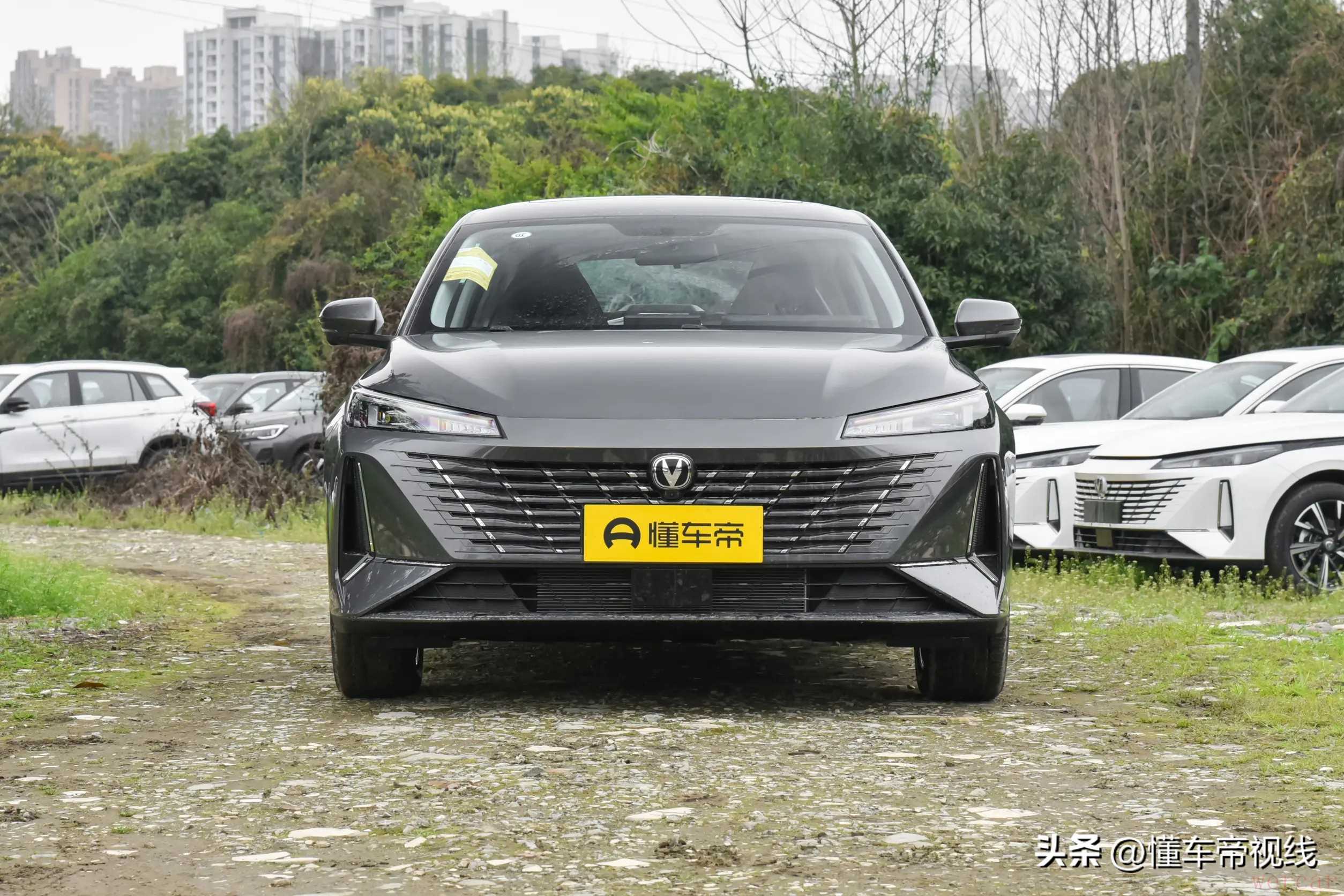 在设计方面,2025款长安逸动基本延续2024款车型整体设计,车头配备无边界样式格栅,搭配修长LED头灯组,下包围两侧带有三角形通风口。车标下方设置有前置摄像头,提供全景影像功能。